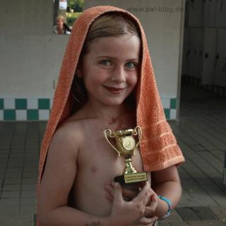 Letzte Woche war Zoe jeden Tag zum Trampolinspringen und Toben im Freibad. Diese Woche ist eigentlich Reiten angesagt - das letzte Ferienprogramm, bevor sie sich den Rest der Ferien für ihren frisch geschlüpften Bruder und spontane Spieldates freigehalten hat, aber heute Nachmittag stand Turmspringen im Freibad auf dem Programm. Bei über 30 Grad Lufttemperatur nicht unbedingt die schlechteste Beschäftigung.